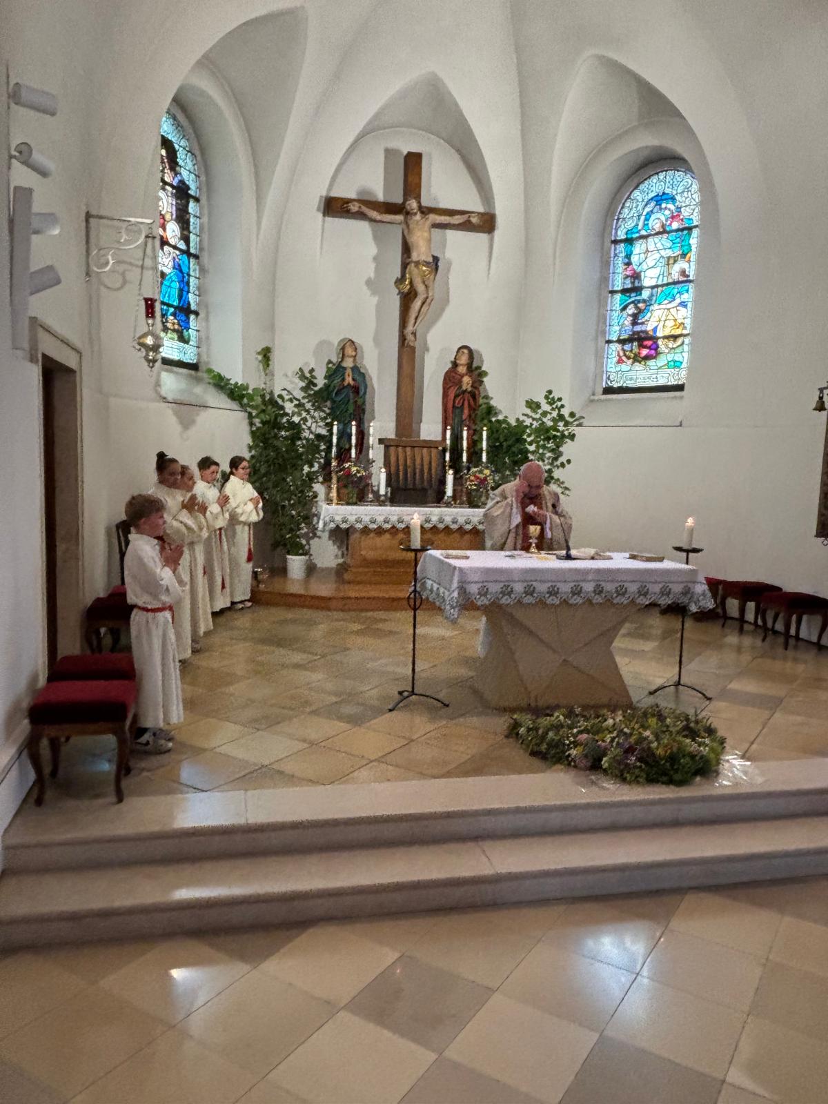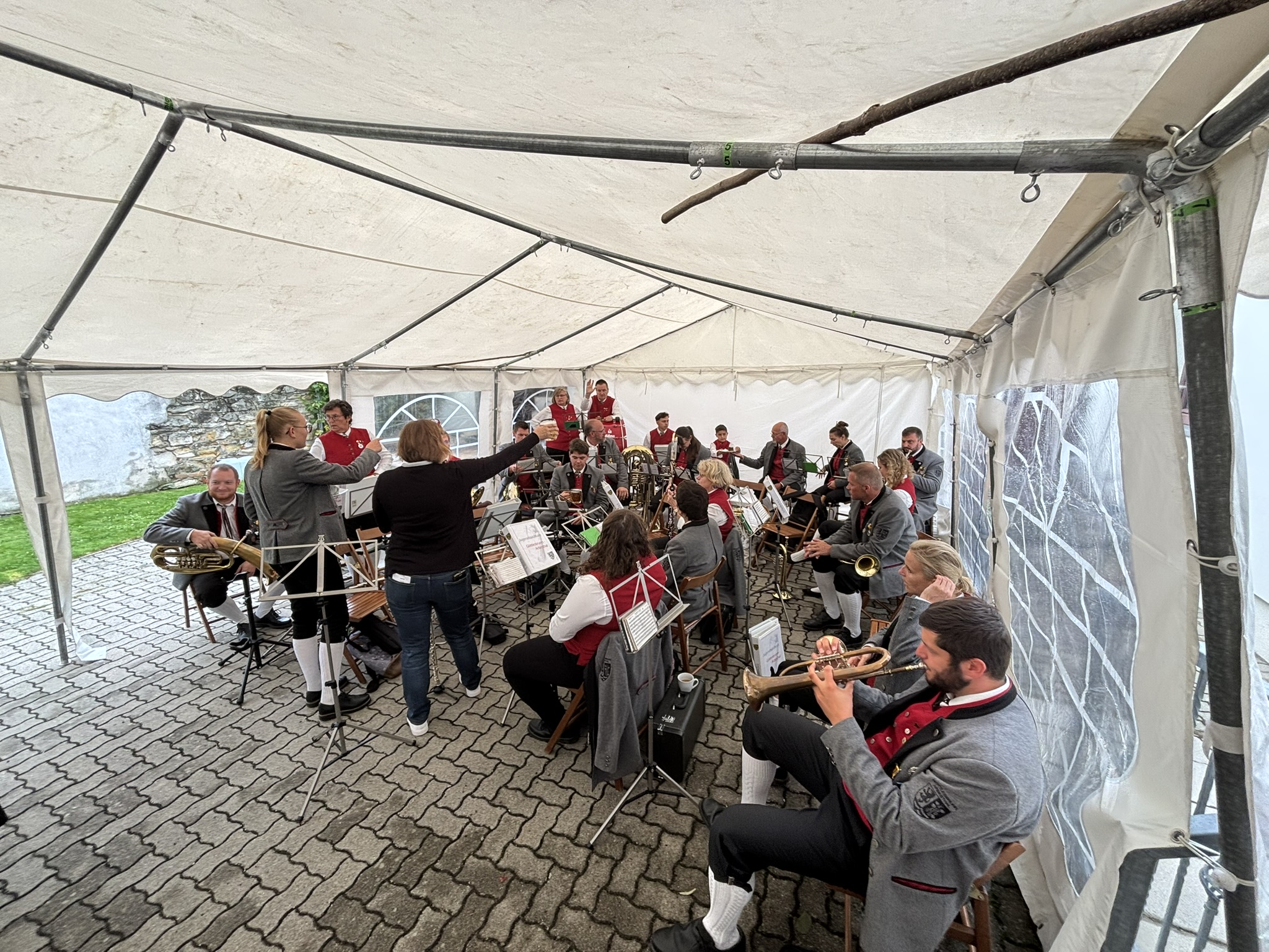 Am 31.8.2025 feierten wir wieder das Erntedankfest in unserer Pfarre. Witterungsbedingt musste die Messe vom Pfarrhof in die Kirche verlegt werden. Danach konnten wir im Pfarrhof und im Pfarrsaal die große Agape genießen. Die Jugendblasmusik Göttlesbrunn-Arbesthal sorgte sowohl für die Umrahmng der Messe als auch für sehr gute Unterhaltung bei der Agape. Schlußendlich ergab sich noch ein lauer Sommerabend zum Verweilen im Pfarrhof. Das beste Wetter war dann am Montag beim Zusammenräumen und Abbau der Zelte :)