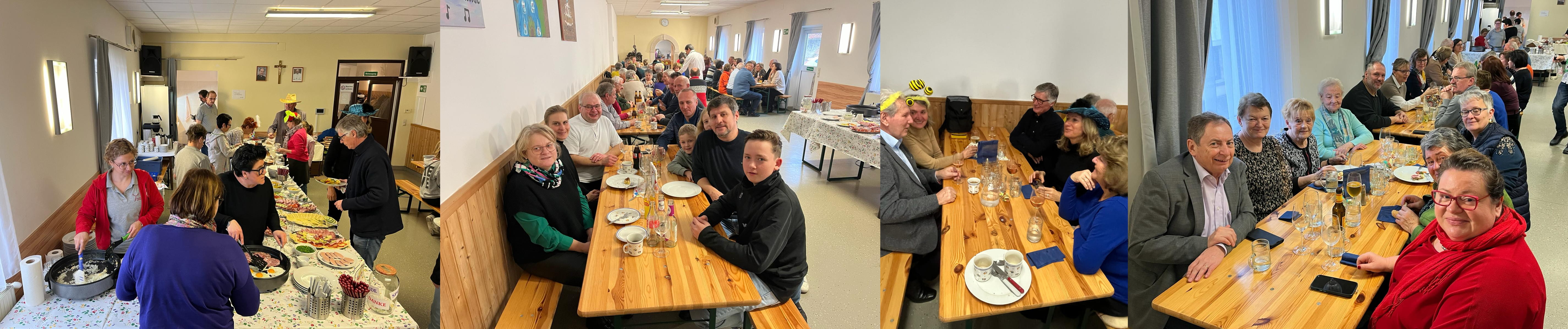 Zum zweiten Mal haben wir zum "Faschingsfrühstück" am Sonntag, 11.02.2024, eingeladen. Bei Ham & Eggs, Spiegeleiern und Aufstrichen sowie Faschingskrapfen und anderen Mehlspeisen ließ die Pfarrgemeinde den Fasching ausklingen. Natürlich gab es auch sehr gute Wein- bzw. Schaumweinbegleitung von unseren Göttlesbrunner Winzer*Innen. Ob verkleidet oder nicht, mehrer Generationen verbrachten einen netten Vormittag, der teilweise bis in die frühen Abenstunden andauerte :).